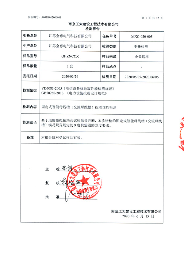 智能母線抗震報告